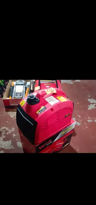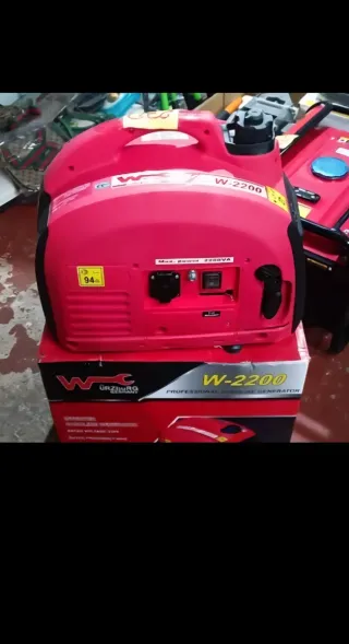 Generador inverter W-2200 de color rojo, diseñado para uso profesional. - un sólo uso, como nuevo - muy poco consumo - ideal caravanas, mercados, autoconsumo... - Potencia máxima de 2200VA. - Incluye toma de corriente y panel de control. - Etiqueta de eficiencia energética 94%.