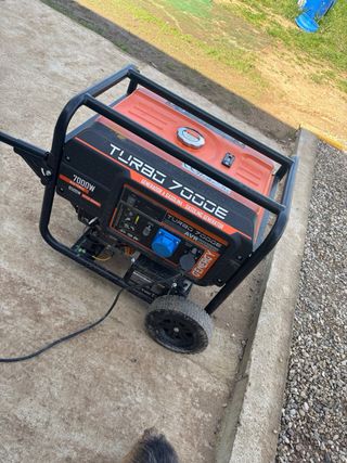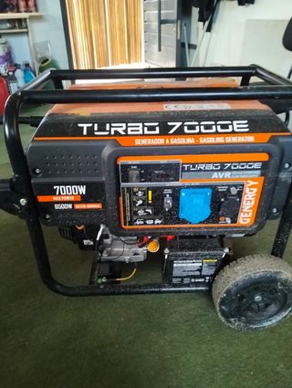 Generador eléctrico Turbo 7000E con motor a gasolina. TIENE PAPELES Y GARANTIA DE TIENDA! Un mes y algo de uso se vende porque se compro para cargar baterías de litio y nos ha dicho el que nos monto las placas solares que ese no sirve que debe ser un generador inverter - Potencia máxima de 7000W. - Potencia nominal de 6500W. - Incluye sistema AVR (Regulador Automático de Voltaje). - Diseño robusto con estructura de protección. - Ruedas para facilitar el transporte.