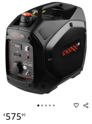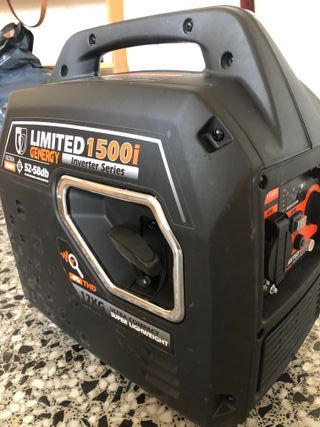Generador inverter de la marca Genergy, modelo LIMITED 1500i. Comprado hace un mes, lo vendo porque nesecito otro más potente. En leroy, me lo cambian por otro, pero lo que me ofrecen no me gusta. Entrego con aceite y gasolina, que puse para probarlo. Su precio nuevo es de 429€ - Potencia de 1500i. - Serie Inverter. - Nivel de ruido de 52-58db. - Peso de 17KG. - Diseño ultra compacto y super ligero.