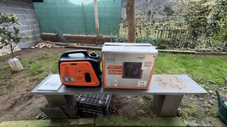 Generador eléctrico inverter gasolina portátil Garland Bolt 110. - Motor de 2 tiempos muy silencioso - Potencia: 880 watios maximo - Modelo: Bolt 110 I - Cilindrada: 42,7 cc - Voltaje: AC 230V Nuevo a estrenar, con caja, instrucciones, herramientas y garantía