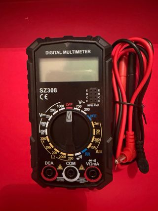 Multímetro digital ANENG SZ308. - Medición de voltaje AC/DC. - Prueba de diodos y transistores (hFE). - Función de continuidad (ON/OFF Beep). - Medición de resistencia. - Generador de onda cuadrada.