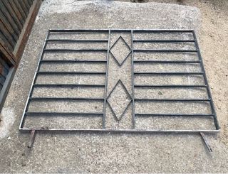 Preciosa reja de ventana de hierro forjado. Ideal para restaurar o usar como elemento decorativo. - Fabricada en hierro resistente. - Diseño clásico con rombos centrales. - Medidas aproximadas: 140x100 cm. - Se entrega tal cual se ve en las fotos, le faltan 2 garras.