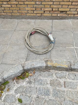 Cable alargador trifásico en buen estado. Ideal para conectar maquinaria o herramientas. - Longitud aproximada de 19 mt