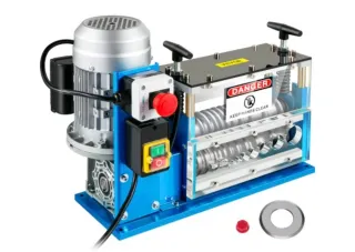 Esta máquina pelacables CREWORKS es una herramienta robusta y eficiente para el manejo de cables. Con entradas para cables desde 1,5mm. Hasta 38mm. - Diseño compacto y resistente. - Incluye pulsador de emergencia. - Para cables de distintos diámetros. - Con entradas diferentes para los distintos diametros - Motor potente de 370W. con reductora. - Peso 25,5 Kg.