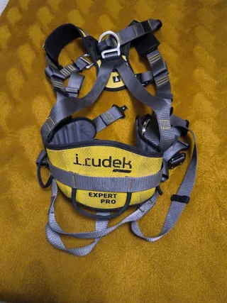 Varias unidades; 1 = 60€ 2 = 100€ Arnés de seguridad Irudek Expert Pro en talla L-XXL. Diseñado para ofrecer comodidad y seguridad. - Arnés de 4 puntos de anclaje. - Cinturón lumbar acolchado. - Bandas reflectantes para mayor visibilidad. - Incluye bolsa de transporte.