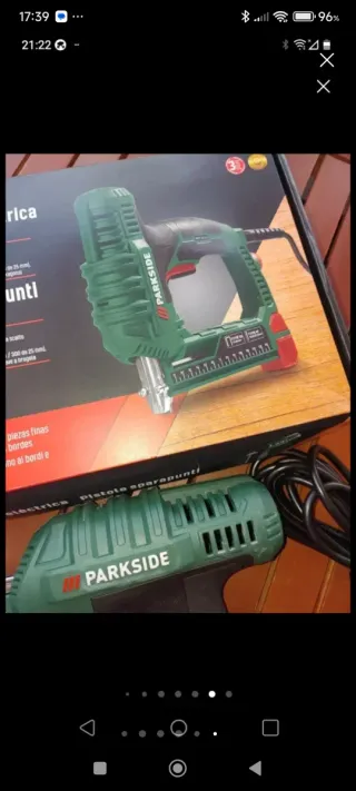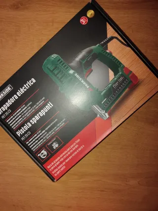 Última unidad a la venta. NUEVA A ESTRENAR SIN ABRIR PRECIO COSTE DE FÁBRICA INCLUYE CAJA DE 1000 GRAPAS/CLAVOS PRECIO EN TIENDA 29€ Pistola grapadora eléctrica de la marca Parkside. Ideal para fijar materiales. - Cable 4 metros largo.