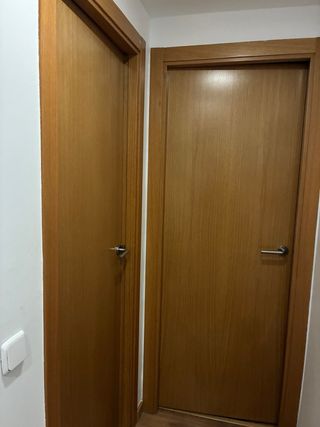 Conjunto de cinco puertas de madera contrachapada con acabado en color roble. - Material: Madera contrachapada. - Color: Roble. 2 de ellas con cerrojo, 3 sin cerrojo Precio 20 euros por puerta