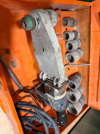 Máquina de soldadura para tuberías de plástico PE / PPR marca Ritmo R63 TFE. Equipo profesional para termofusión de tuberías, ideal para fontaneros e instaladores. SE ESCUCHAN OFERTAS teniendo en cuenta que nueva sin accesorios cuesta 685€ ✔ Potencia 1400W ✔ 230V ✔ Bocachas Ø16–63 mm (ver fotos) ✔ Maletín incluido 450×350×130 mm ✔ Peso 8,4 kg ✔ Soldadura por encastre precisa y fiable Herramienta robusta y duradera, perfecta para trabajos en obra o instalaciones de fontanería. #soldador #ppr #pe #termofusion #fontaneria #ritmo #herramientaprofesional #tuberias