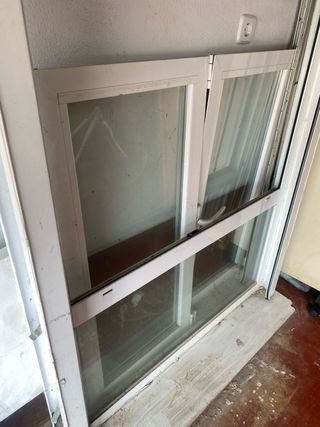 Ventana de aluminio en color blanco. - Marco de aluminio. - Acristalamiento. -Altura 194,5 cm. -Ancho 118 cm.