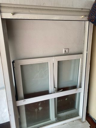 Puerta de aluminio formada por 3 hojas para salida a patio, hace 5 años la anterior propiedad cambió la ventanas de la vivienda la factura de esta puerta fue de 7000€, posteriormente agrandaron la vivienda sacando una habitación nueva y en lugar de quitar las puertas de salida antiguas las mantuvieron. Al adquirir la vivienda y reformarla hemos desmontado las puertas estando listas para ser montadas en otra ubicación. - Marco de aluminio blanco. - Paneles de vidrio esmerilado. - 200 ancho 203 alto más persiana. - Precio a convenir.