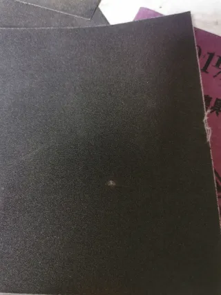Papel de lija de color negro. Ideal para trabajos de lijado. - Textura granulada.