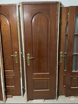 Se venden puertas de madera maciza, listas para instalar con su precerco 3 puertas de 62x203cm y 5 puertas de 72x203, además puerta de cocina con cristales de 72x203 y puerta de salón doble con cristales - Fabricadas en madera maciza. - Incluyen precerco para facilitar la instalación. - Diseño clásico con detalles tallados. - Precio negociable.