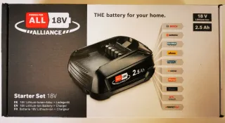 Batería de litio de 18V y 2.5Ah compatible con el sistema ALLIANCE. - Capacidad: 2.5 Ah - Voltaje: 18 V - Tecnología: Lithium-Ion - Compatible con marcas como Bosch, Gardena, Gloria, Wagner, Rapid, Steinel, Flymo, Husqvarna, Kärcher y PerfectPro. PRECINTADO. TOTALMENTE NUEVO.
