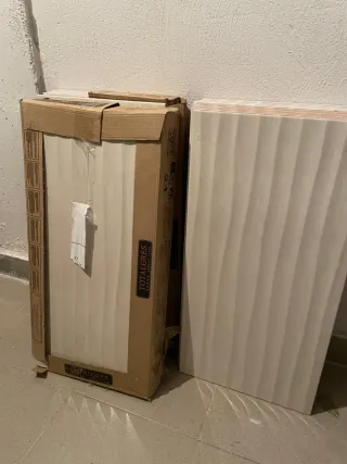 Dos azulejos con un diseño moderno y geométrico, ideales para dar un toque especial a tus espacios. - Diseño en relieve con tonos grises y blancos. - Acabado mate. Uno de 30 x 60 Otro de 26 x 60 8 euros los 2