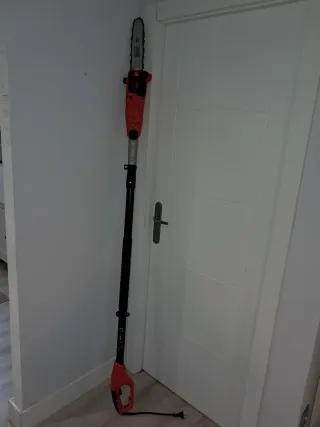 Sierra eléctrica de pértiga Black+Decker para podar ramas altas. Su diseño extensible permite alcanzar zonas difíciles. Largura mínima 2 m, Largura máxima 3m. Cabeza móvil para facilitar el corte. En perfecto estado, usada dos veces. Trabaja muy bien con cortes rápidos. Pesa casi 4 kg - Color: Naranja y negro. - Mango ergonómico.