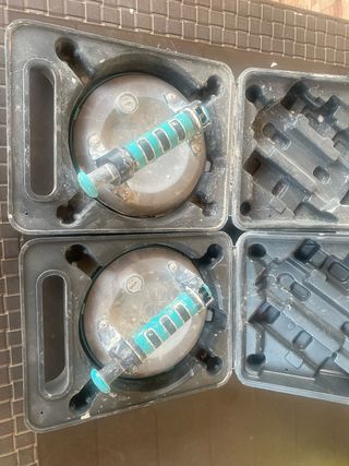 Set de dos ventosas para facilitar la colocación de azulejos y otros materiales lisos. Son herramientas prácticas para el manejo de piezas pesadas o de gran tamaño. - Incluye dos ventosas. - Mango ergonómico para un agarre firme. - Mecanismo de succión para fijación segura.