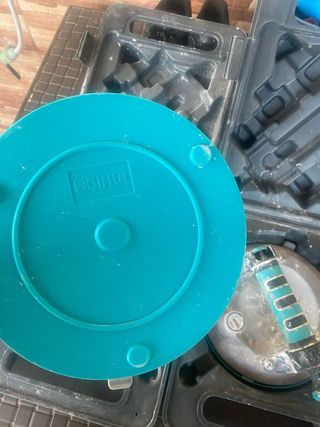 Máquina para hacer regolas, ideal para trabajos de construcción y albañilería. - Diseño robusto y duradero. - Mango ergonómico para un mejor agarre. - Cable de alimentación incluido. tiene los discos un poco oxidados de no usarse solo se uso para hacer varios trabajos