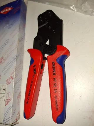 Alicate crimpador Knipex modelo 97 52 14. - Capacidad: 0,10 - 1,5 mm². - Equivalente a AWG 27 - 15. - Fabricado en Alemania.