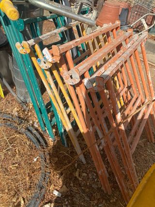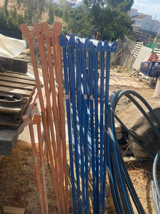 Tubo de hierro con acabado en pintura gris. Largo 190 centímetros diámetro 5 centímetros tengo 2 unidades y también tengo tercer tubo largo 217 cm y diámetro 7 , el precio 15€ por todo - Material: Hierro. - Color: Gris.