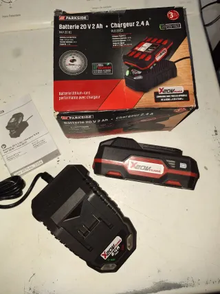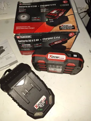 Se vende cargador y batería Parkside X20VTEAM. - Batería de 20V 2Ah. - Cargador rápido de 2.4A. - Tecnología Lithium-Ion. - Compatible con la serie Parkside X20VTEAM.