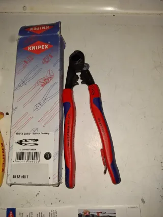 Se venden dos alicates Knipex, uno de ellos es un alicate de corte diagonal y el otro es un alicate de punta larga. - Alicate de corte diagonal Knipex 95 62 190 T. - Alicate de punta larga Knipex 26 16 200 T. - Fabricados en Alemania.