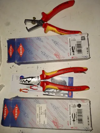 Set de dos alicates pelacables Knipex para electricista. Son herramientas de alta calidad, ideales para trabajos profesionales. - Modelo 11 06 160. - Modelo 97 78 180T. - Fabricados en Alemania.