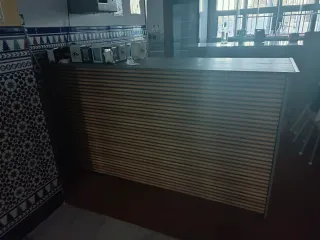 Barra de madera con un diseño moderno y líneas horizontales. - Material: Madera. - Diseño: Líneas horizontales.