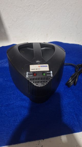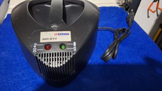 Cargador de baterías Berner de 36V. Se encuentra en buen estado y con poco uso. - Modelo: BACC-36 V LI - Indicadores LED de carga (rojo y verde). - Diseño compacto y robusto.