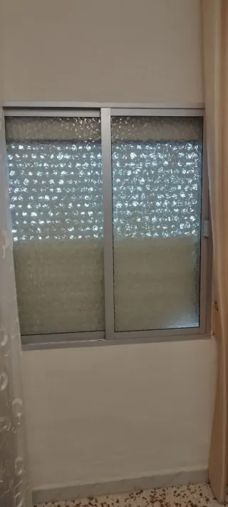 Ventana de aluminio con persiana - Cristal texturizado para mayor privacidad. - Marco de aluminio plateado.