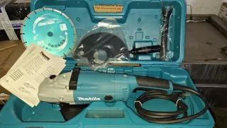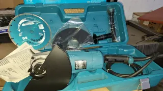 Amoladora angular Makita GA9020R en su maletín. - Incluye disco de corte Diamak. - Protector de disco. - Empuñadura auxiliar. - Manuales de instrucciones.