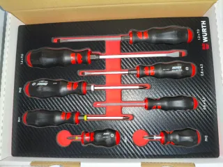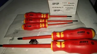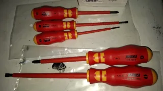 Set de 5 destornilladores aislados VDE de la marca Wurth. - Incluye destornilladores de diferentes tamaños y tipos. - Mango ergonómico para un mejor agarre. - Ideales para trabajos eléctricos.