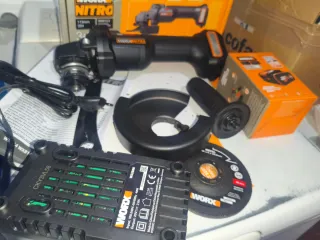 Amoladora angular Worx WX815 de 20V y 115mm. Incluye cargador y disco. - 1 bateria de 4ah 20v - Modelo: WX815 - Voltaje: 20V - Diámetro del disco: 115mm - Incluye cargador WA3880 - Incluye disco de corte