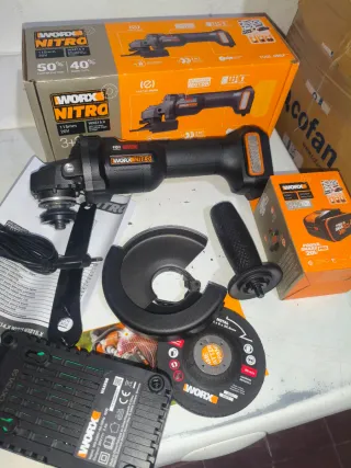 Amoladora angular Worx Nitro WX815.9 de 115mm, con motor Brushless y tecnología EC-BRAKE. - Incluye cargador WA3880 y batería PowerShare Pro 4.0Ah. - 3+2 años de garantía limitada. - 50% más corte rápido, 40% más cortes. - Anti-kickback technology. - Ajuste 2 en 1 sin herramientas. - Diseño Slim Body.