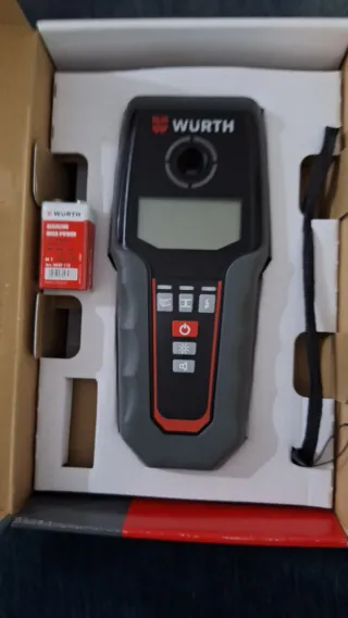 Detector de metales Wurth MD 12, completamente nuevo y en su embalaje original. - Incluye una pila alcalina. - Correa de sujeción.