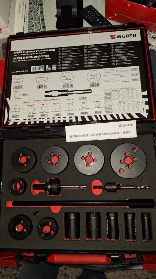 Set de coronas HSSCO8 Bi-Metal de la marca Wurth. Incluye 16 piezas para corte de precisión. - Modelo: HSSCO8 Bi-Metal. - Fabricante: Wurth. - Material: Bi-metal. - Número de piezas: 16.