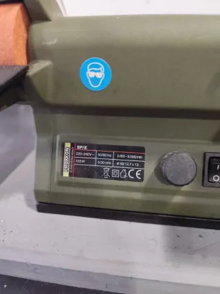 Esmeriladora Casals modelo VEB150. - Voltaje: 220V - 50Hz. - Potencia: 130W. - Velocidad: 2950 min⁻¹. Se encuentra en un taller particular como hobby, por lo que ha tenido muy poco uso.