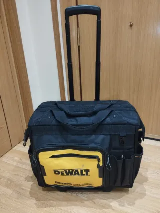 Maleta para herramientas de la marca DeWalt, diseñada para facilitar el transporte. -Gran capacidad de almacenamiento. -Muy poco uso. - Color negro y amarillo. - Con ruedas para mayor movilidad. - Compartimentos exteriores para organización. -Se entrega en mano en Gijón y Oviedo. -Envio por impost.
