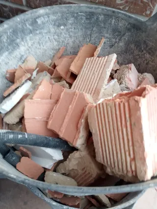 Material de escombros, ideal para rellenos en obras o proyectos de construcción. Piezas de ladrillo y otros materiales de construcción. - Ladrillos de terracota. - Fragmentos de materiales de construcción.