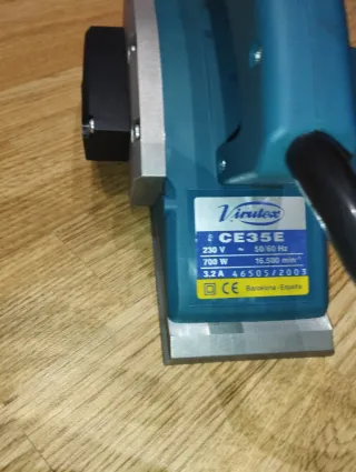 Cepillo eléctrico Virutex CE35E. -Como se aprecia en las fotos tiene muy poco uso. --Sí es necesario se envía video de la máquina en funcionamiento. - Color azul y plateado. - Mango negro. - Cable de alimentación negro. -Envio por impost.
