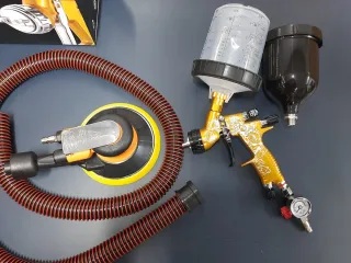 ¡OPORTUNIDAD!! Lote de Lijadora Rotoorbital con aspiración..se incluyen varios discos y conector. Plato tipo velcro de 150mm de diámetro. Órbita 5mm. Y Pistola de pintar profesional 1.3 Black Edición, nueva, sin extrenar. Conjunto PPS completo con adaptador y Taza de Pvc 600ml. Ideales para la Reparacion y aplicación de barniz, pintura al agua o disolvente, poliuretano... en carrocerias, muebles, industria, etc. consiguiendo facilmente acabados profesionales. Dispone de regulacion de: presion (manometro), caudal pintura y abanico. Hago envios por Wallapop, también a contrarembolso desde 9€ o entrego en mano en Gijon.