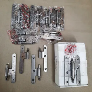 12 Herrajes tipo pernio Mani-Grip en acabado plata, ideales para puertas de interior y muebles. Todos nuevos, muchos aún precintados en sus bolsas y caja original. Incluye varias unidades como se ve en las fotos. - Marca Mani-Grip. - Color plata. - Diseñados para mano izquierda.