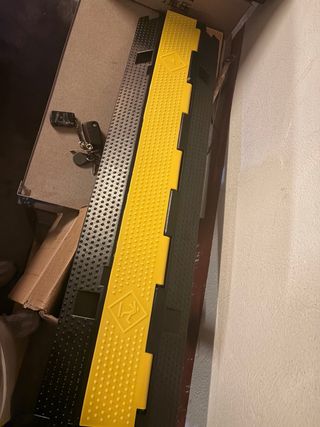 Pack de 3 pisacables nuevos a estrenar. Protector de cables de alta visibilidad en color amarillo y negro. Diseñado para proteger cables y mangueras. - Material resistente. - Diseño modular para fácil instalación. - Superficie antideslizante.