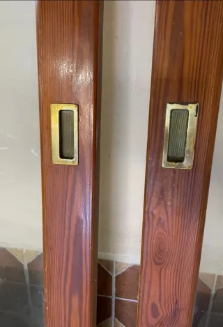 Puertas de madera maciza, en buen estado. - Madera de tono miel. - Cristal translúcido en la parte superior. - Opción a puerta doble o puerta individual