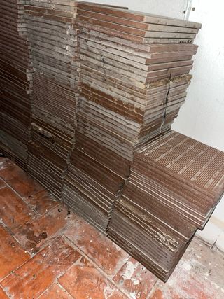 Vendo dos cajas de baldosas de gres. Miden 15x15 cm son ideales para poner en el exteriror. - Material: Gres. - Color: Marrón. - Forma: Cuadrada.
