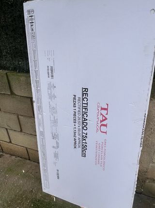 Se venden baldosas de gres porcelánico rectificadas de la marca TAU Ceramica. - Medidas: 75x150 cm. - Acabado: Rectificado. - Material: Gres porcelánico. - Cada pieza cubre 1,13 m2 aprox.