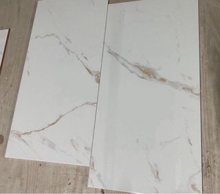 Caja de azulejos de la marca Colorker, modelo Calacatta Gold. - Precio por caja 29e (vienen 5 unidades). - Cada caja son 1.58m2. - Medidas: 31,6 x 100 cm. - Tipo: Gres porcelánico, Pasta Blanca. - Acabado: Rectificado. Se venden por exceso de material de la obra de un baño en Madrid capital