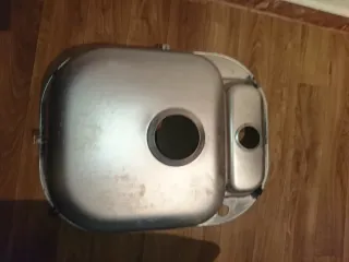 Fregadero de acero inoxidable con un seno más práctica cubeta, medidas 68 de ancho por 48 de fondo, tengo los desagües y válvulas, la cubeta es tapón no rejilla lo hace más práctico a la hora de lavar comestibles, ideal para espacis reducidos, caravanas, camper, buen estado. - Material: Acero inoxidable. - Diseño moderno y funcional. - Incluye orificio para grifo.