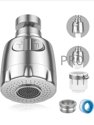 Aireador para grifo, 360 °, giratorio, fregadero, de ahorro hídrico, con filtro regulador de cabezal y boquilla para cocina baño, 2 modos, Plata