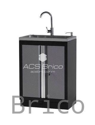 ARMARIO TALLER BASE 2 PUERTAS Y GRIFO ALYCO 192855 DESCRIPCIÓN: - Armario base con fregadero, 2 puertas con cerradura y 2 baldas interiores, sólido y muy válido para ambientes de taller con herramientas pesadas. - Al disponer de cerraduda, permite guardar herramientas valiosas con seguridad. - El interior permite modificar la altura de las baldas, permitiendo una distibuición que permite guardar herramientas voluminosas. - Forma parte de los conjuntos modulares y pueden realizarse combinaciones de armarios y módulos según necesidades. - El grifo y el fregadero vienen incluidos. - Incluye jabonera en un lateral (con botella). - Se...