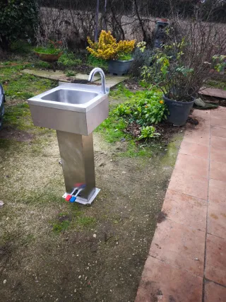 Lavabo de acero inoxidable con pedestal, ideal para estudio de tatuajes o peluquerías! Posibilidad de agua caliente y fría, dispongo de dos unidades! Apenas usados! - Fabricado en acero inoxidable. - Diseño con pedestal. - Grifo incluido. Precio por unidad!